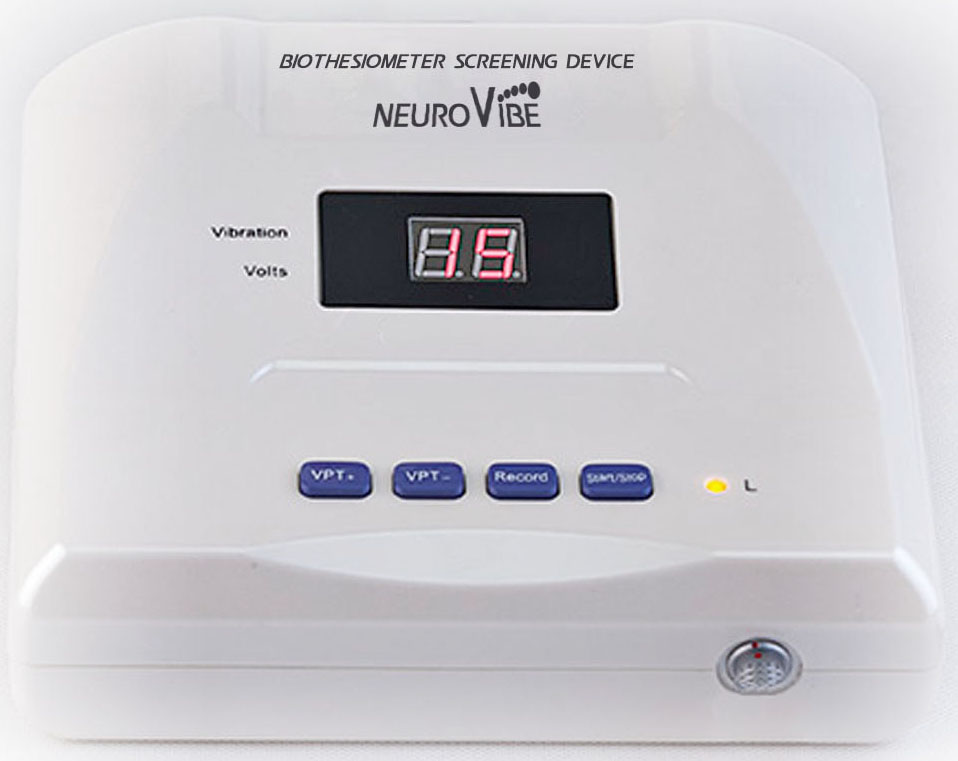 The NeuroVibe™ series is a Non-Invasive Digital Biothesiometer screening device used to detect peripheral neuropathy.